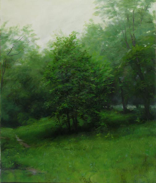 These landscape paintings fall into two basic types. There are those that are primarily focused on documenting the world around me. The other type involves inventing imaginary places in the studio.